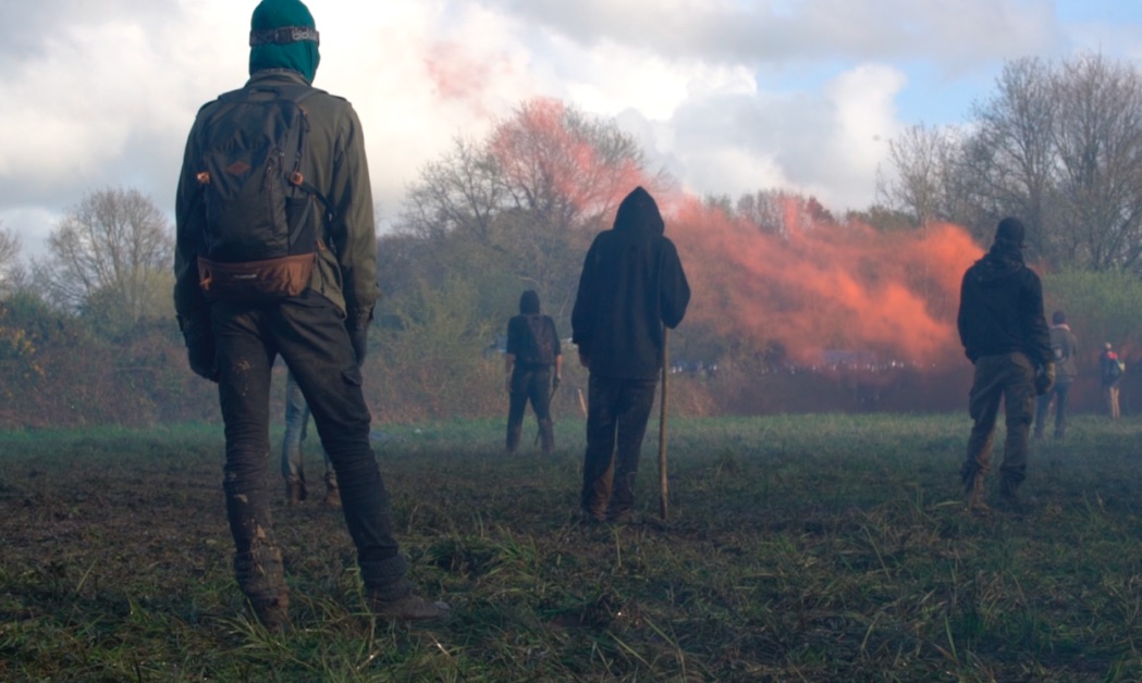Après avoir saisi, au travers d’un prisme très personnel, les manifestations des Gilets jaunes en 2018 et son histoire d’amour avec un manifestant dans le percutant Boum Boum (2022), Laurie Lassalle poursuit ses recherches de documentariste activiste dans la Z.A.D. de Notre-Dame-des-Landes avec son nouveau film, Forêt Rouge. Sous l’apparence d’une œuvre moins intime, la cinéaste se tourne vers un autre procédé narratif. Elle abandonne sa voix de narratrice et sa présence comme principale protagoniste inscrite dans un mouvement (autrement dit, sa subjectivité), s’effaçant au profit du collectif. Le point de vue de sa caméra nous apparait comme étant ici celui de la forêt, de celle-ci en particulier, comme lieu, territoire, représentante à la fois de la nature et du lien avec l’humain, dans une approche sensible. Laurie Lassalle s’installe avec son sac à dos et sa caméra dans la ZAD au moment de l’annonce de l’abandon du projet d’aéroport par Édouard Philippe et la série d’expulsions et la vague de répression qui vont suivre dans cette forêt qui n’a plus été administrativement une forêt. En immersion, armée de patience, au fil des saisons, son regard tendre envers les occupants et leurs paroles oscille entre des scènes délicates où l’on caresse les écorces de ces bois aux mille histoires, réveillant toutes sortes d’imaginaires, et d’autres en pleine guerre, lors des affrontements avec les CRS venus en armée. D’un côté, il y a ce chaos et cette violence contre laquelle les occupants résistent et puis, il y a les temps de reconstructions perpétuelles, du soin et de la fête. C’est là la force de la cinéaste, son observation immersive d’un territoire, pendant plusieurs années, lié aux luttes, aux idéaux et au vivant, auprès duquel le cinéma s’approche par nécessité pour rendre compte d’une autre manière de faire société. En amplifiant le réel capturé par les multiples caméras et avec l’aide de ses « camérades », en esthétisant la bande sonore du film, c’est comme si dans chaque plan se logeait délicatement un geste d’espoir et de poésie pour no(s) futur(s).
